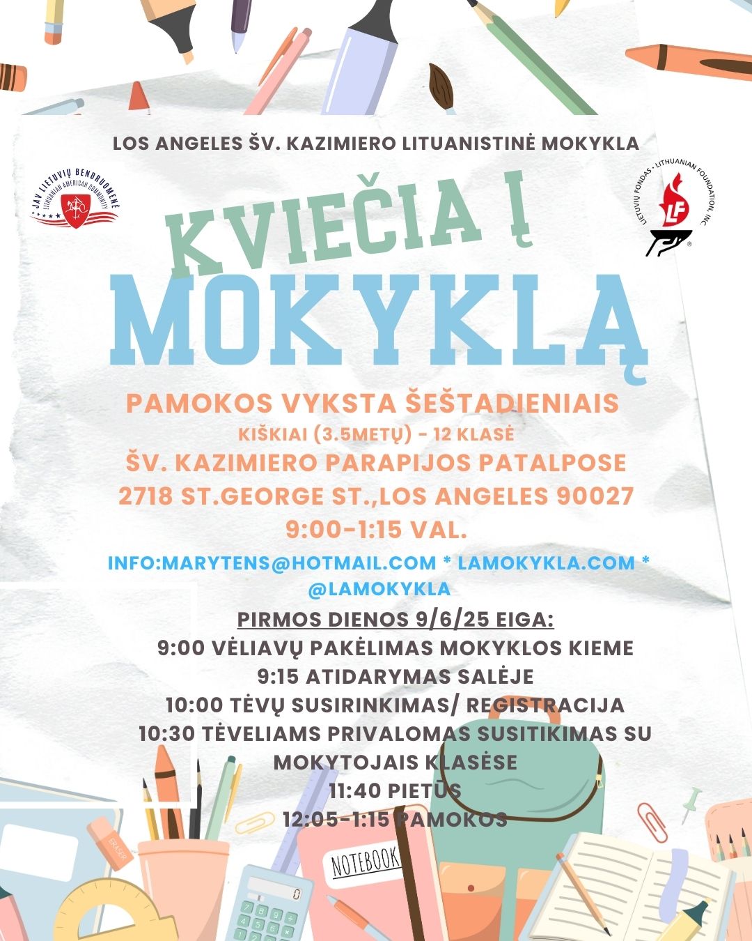 Pradžia Apie Mokyklą Istorija Mokyklos Taisyklės Mokytojai Mokytojų Budėjimo Lentelė Registracija Namų Darbai Kiškiai Darželis Pirma Klasė 2 Klasė 3 Klasė 4 Klasė 5 Klasė 6 Klasė 7 Klasė 8 Klasė 9 Klasė 10 Klasė Seminaras Suaugusių kl. Media Laiškas Tėveliams Kontaktai English Lietuvių Home » Registracija Registracija Prašom registruoti. Registracijos kainos (2025-2026) Medicinis leidimas (2025-2026) Vaiku apsaugos leidimas (2025-2026) Mokyklinis kalendorius (2025-2026) Pakvietimas (2025-2026) Kalendorius Naudingos nuorodos, svetainės JAV LB Švietimo taryba /Lithuanian Educational Council of the U.S. Lietuvių kalbos žodynas Lietuvių literatūros antologija Pasakos vaikams Katalikų Bažnyčios žinios ir skaitiniai Lietuvos dienraštis Žurnalas vaikams Lietuviu kalbos pamokos wikihow.com/Learn-Lithuanian ilanguages.org/lithuanian.php Jurgio Didžiulio projektas, ieškoti To Be LT: Kartu Amerikoje Namu Darbai DarželisPirma Klasė2 Klasė3 Klasė4 Klasė5 Klasė6 Klasė7 Klasė8 Klasė9 Klasė10 KlasėSeminarasSuaugusių kl.Kiškiai